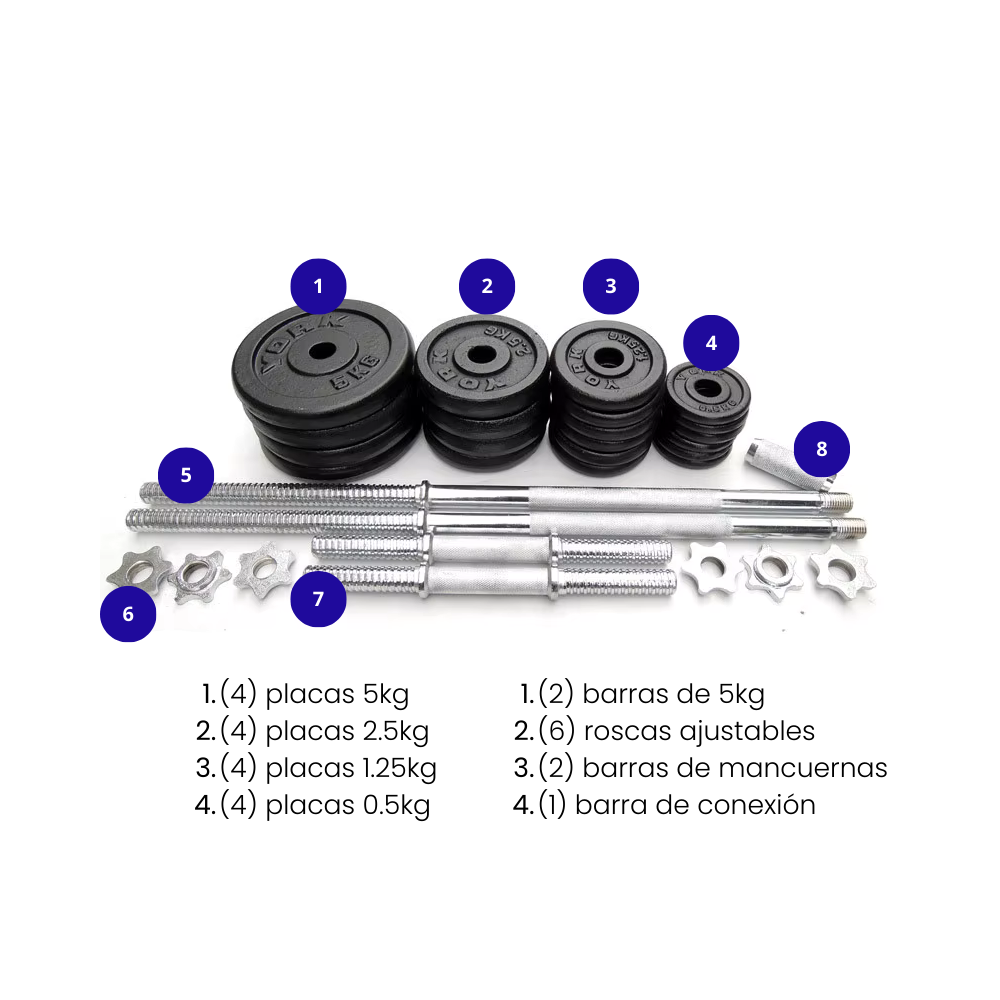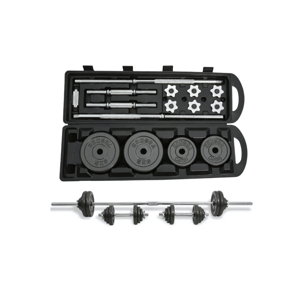 Lleva tu entrenamiento a todas partes con este práctico set de mancuernas de 50 kg con maletín. Incluye discos de diferentes pesos que te permiten ajustar la carga según tu nivel y objetivo, ideal para rutinas de fuerza, tonificación y musculación en casa o gimnasio. Su maletín portátil facilita el transporte y almacenamiento, manteniendo todo en orden y siempre listo para tu próxima sesión.